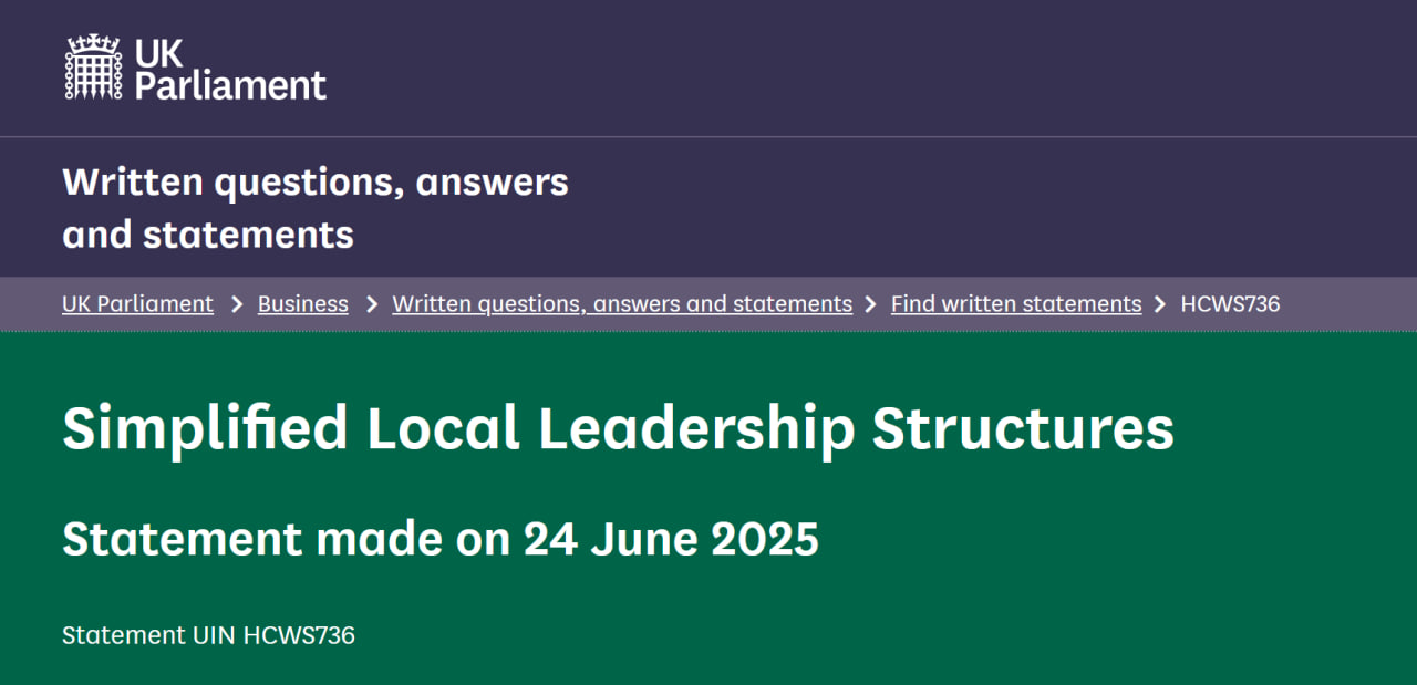On 24 June 2025, the Government unexpectedly announced a pause on the election of any new directly elected mayors at district and borough level until My 2027, along with stating its intention to legislate against the creation of any more. This comes after the Heritage Party officially joined the campaign against a new Directly Elected Mayor for Plymouth.